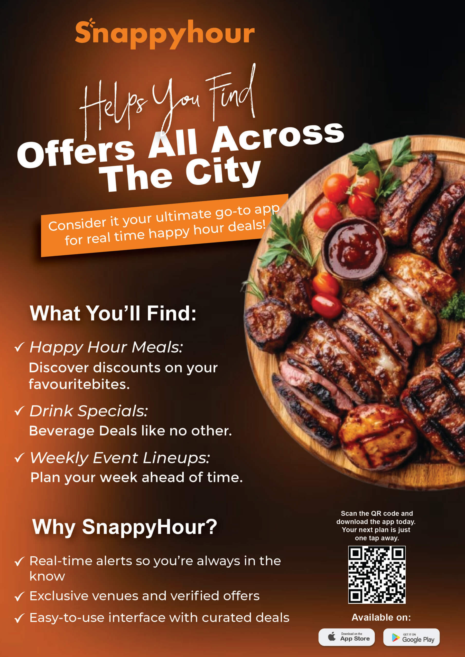 Snappy brings you exclusive, time-sensitive offers from bars, restaurants, and venues in your area. Whether it’s a happy hour, lunch special, or a surprise deal, you’ll never miss out on the best local offers again. Stay connected, save money, and enjoy your community to the fullest.